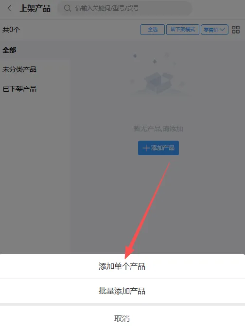 当前产品添加完毕,你可以逐一添加其他产品,也可选择批量添加,提升操作效率。