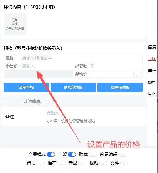 依次上传产品主图、填写标题与分类、设置零售价格,完成后发布产品,快速上线展示。
