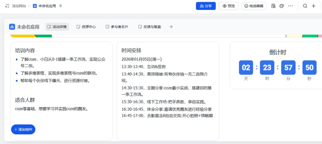 📄 第二步:打造“活动详情页”(门面担当)