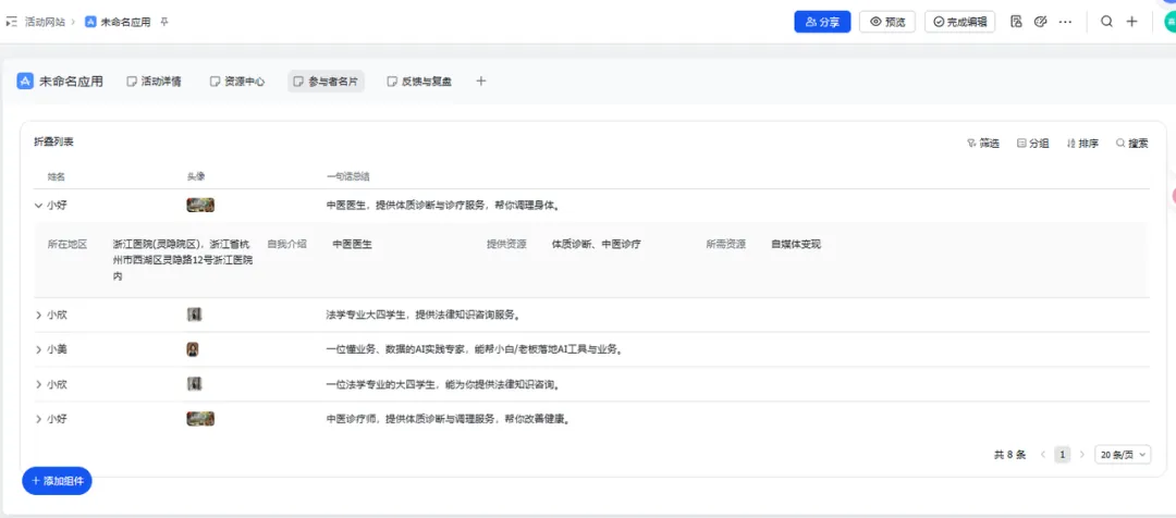 👥 第四步:设计“参与者名片页”(链接神器)