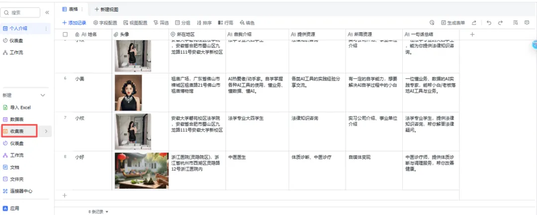 :比如姓名、头像、个人简介、我能提供什么、我想获得什么。(通过一个简单的在线表单收集)