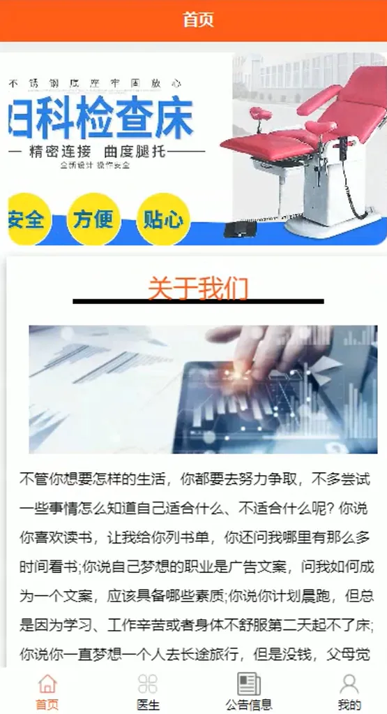 - 患者端: 首页浏览、医生查询、公告查看、在线咨询、预约挂号、就诊记录、医生评价及个人收藏。