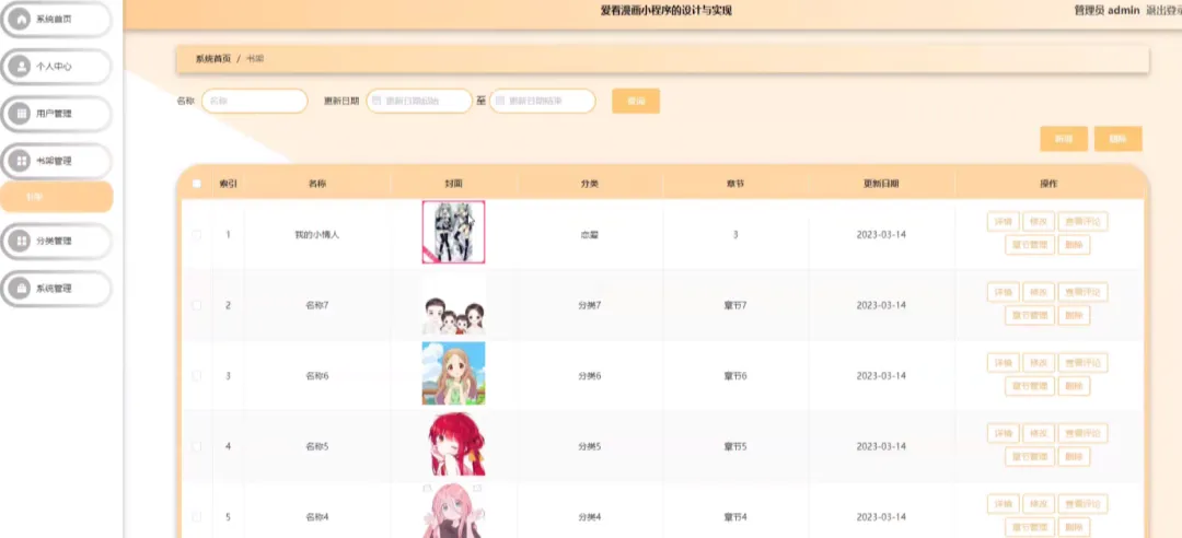 "爱看漫画"微信小程序,以便更好地维护漫画资源,监控用户行为,优化用户体验,并推动漫画文化的传播。通过这一系统,我们能够确保小程序内容的丰富多样,同时精准把握市场动态,为漫画爱好者提供更加贴心和专业的服务。