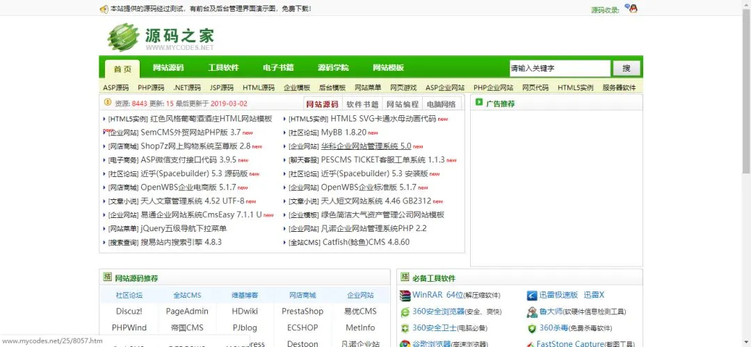 今天给大家分享的是一个源码下载网站——源码之家,源码之家,提供最新免费网站源码下载,配有前台及后台管理界面演示图,绿色安全,每日更新! ASP、PHP、JSP、DOTNET、数据库、教程、源码下载。相信学习源码的童鞋会用到。