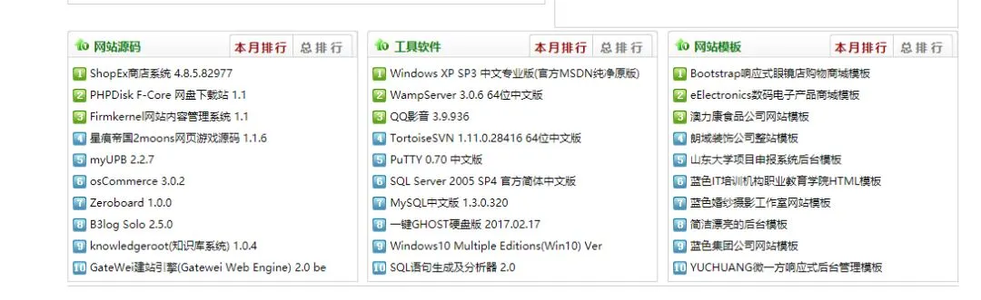 月排行及总排行下载等
