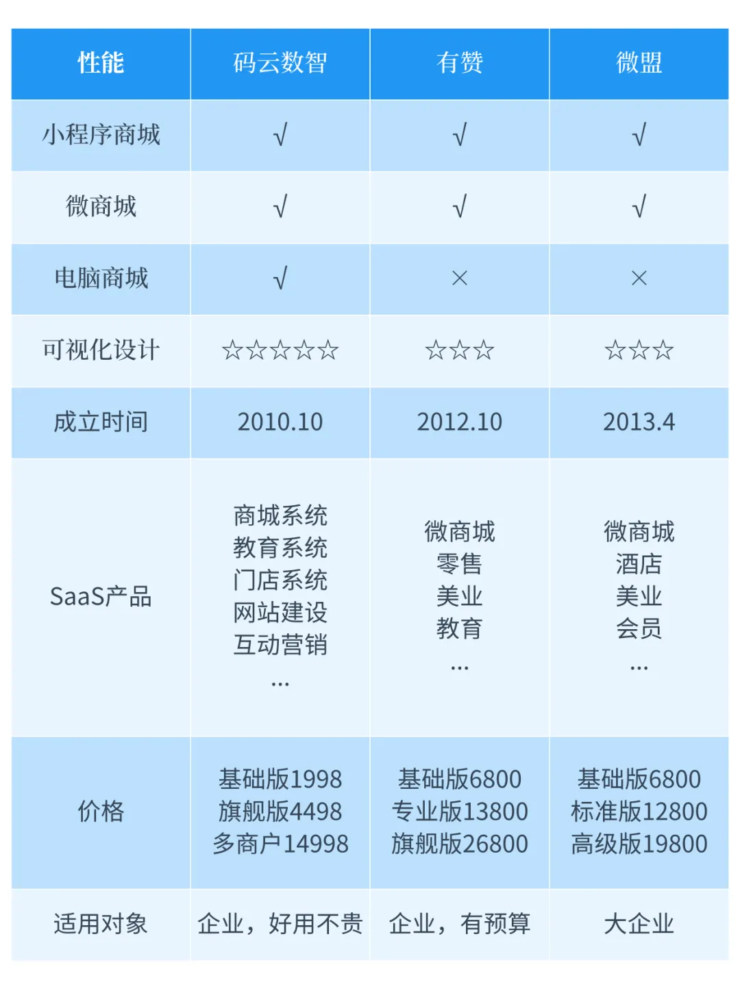 码云数智,好用不贵,价格仅为有赞、微盟的 1/5 - 1/2,无交易佣金,服务器和域名费用全包