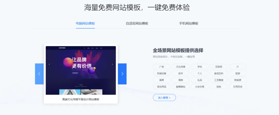 成本低,上线速度快,不用懂代码,或者有技术基础,复杂的编程简单化,留下简单步骤,海量响应式模板,免费用,覆盖各行各业,选中心仪的模板,鼠标拖拽就能调整模块位置,点击图片,能直接替换,每一步修改实时预览,不用反复调试。