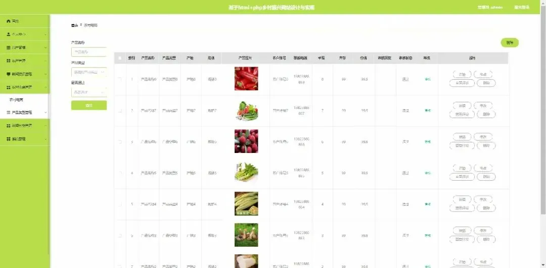 最后,对网站的建设效果进行了简要分析,并提出了一些改进意见,为其他地区的乡村振兴网站建设提供了一定的借鉴与参考。PHP系统是基于B/S架构模式,有针对性地采用PHP技术,管理员数据库系统选用MySQL数据库。系统主要分为前端用户和后台管理员、农户角色三个部分,前台用户功能模块包括注册、登录、农村电商、新闻资讯、个人中心等功能模块;后台管理员包括个人中心、用户管理、农户管理、产品类型管理、农村电商管理、订单管理、系统管理。农户角色包括农户管理、产品类型管理、农村电商管理、订单管理等功能模块。