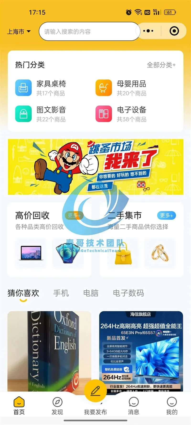 【源码下载地址见文章末尾】在数字化浪潮席卷各行各业的今天,二手交易市场正迎来爆发式增长。无论是个人闲置物品流转,还是专业商户的库存处理,一个高效、可靠、功能全面的线上平台已成为刚性需求。然而,市面上许多二手交易系统或功能单一,或体验割裂,难以满足多元化的商业运营需求。春哥团队联合帮企商城原创开发的“春哥帮企二手交易小程序源码系统开源商业运营版”,正是为解决这些痛点而生,致力于为用户构建一个集交易、社交、管理于一体的完整生态闭环。