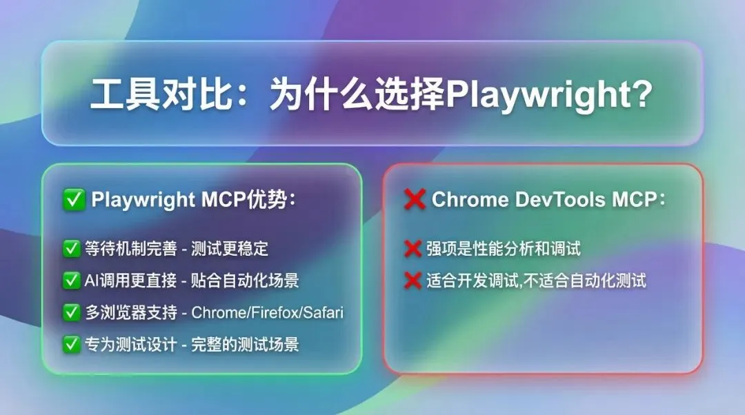 使用以上2个MCP折腾过很多事情后,对两个工具可以说是了如指掌了,两个工具虽然都能操作浏览器,但对于自动化测试来说,Playwright有几个关键优势: