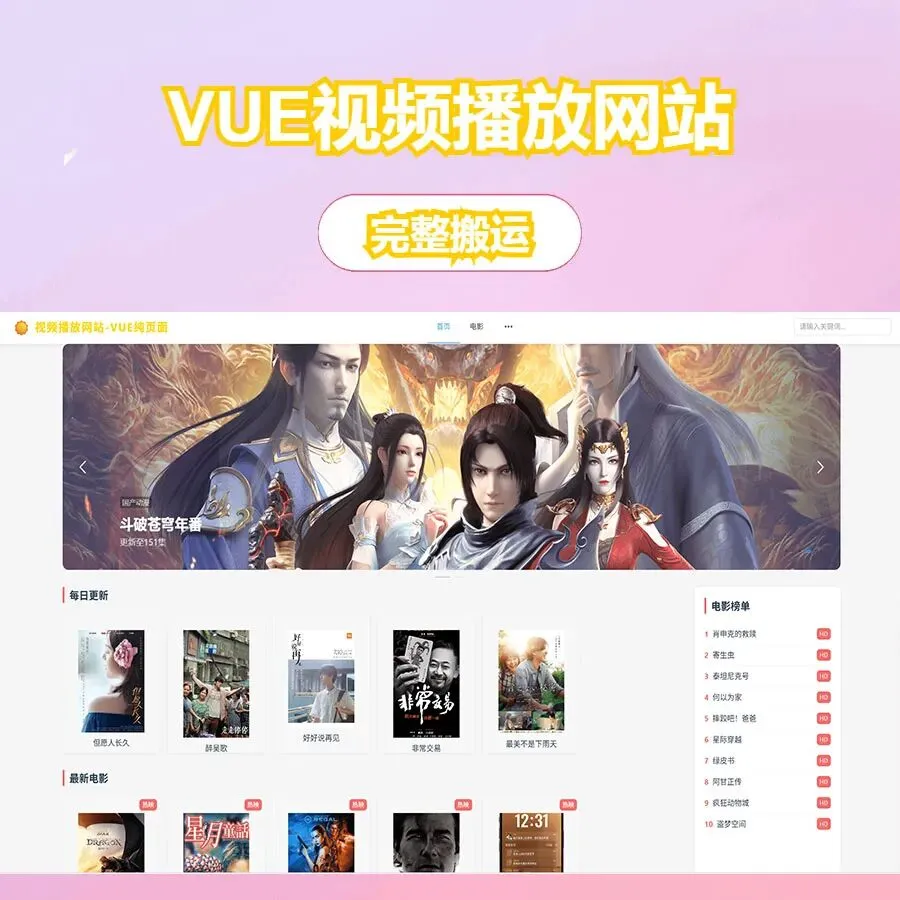 vue程序 视频播放网站 纯前端 vue源码带搭建教程