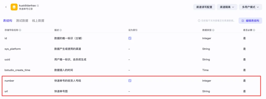 一个是number(收货人电话号码)、另一个是url(快递单号图片链接)