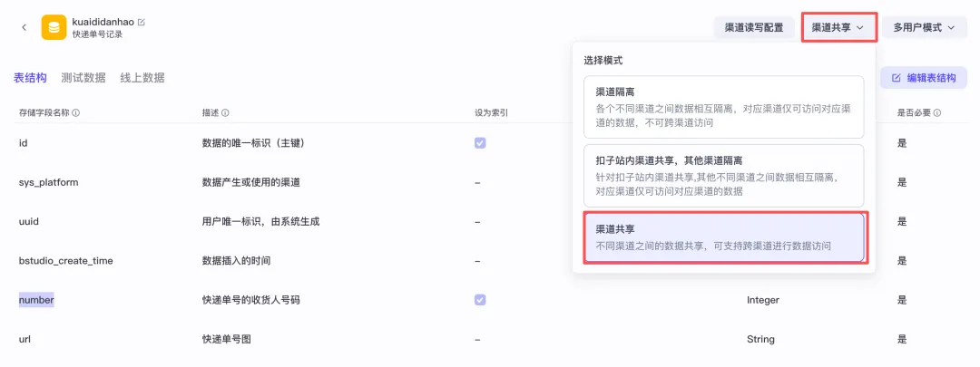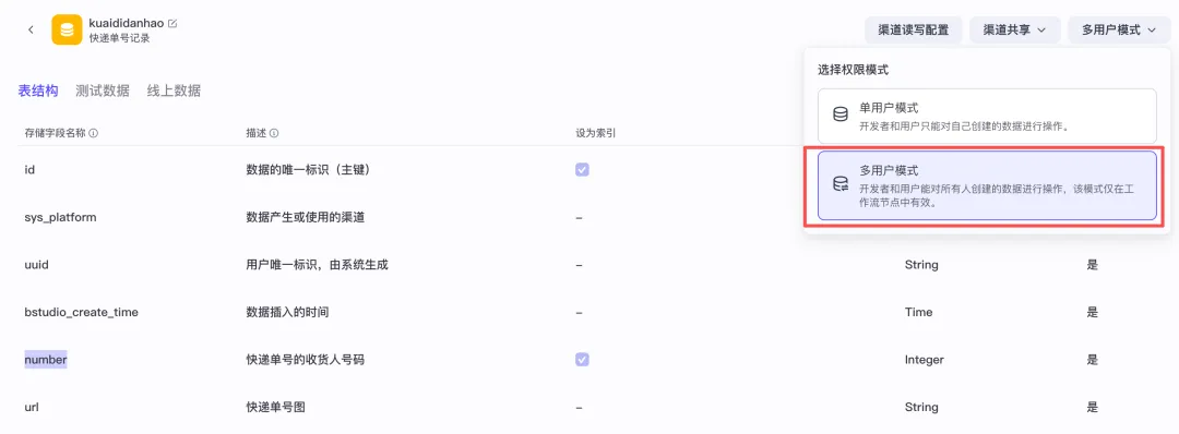 在Coze的资源库中去创建一个数据库,主要功能就是让发货人存储快递单号图,让收货人查询对应的快递单号