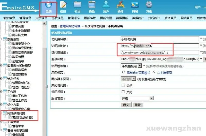 ①系统 - 网站多访问端 - 管理网站访问端 - 手机访问端路径