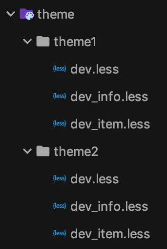 我们可能还发现,“小程序 A”和“小程序 B”的样式差异,除了资源图片和主题色之外,“开发”页面的布局方式也有差异,这该怎么处理呢?没错,还是通过别名指定 less 文件的方式,为各页面指定对应的样式文件。