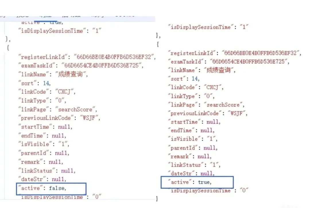 可以看出,active值已经从“false”变成了“true” ,说明成绩查询这个功能已经具备使用的条件了。
