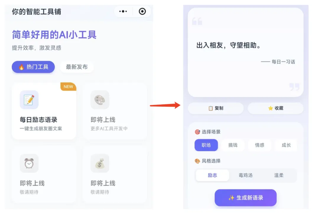 作为一个压不垮的兄弟,我知道大家都在为了生活努力打拼,都有自己的不容易。希望这个小程序,能给大家的生活带来一些便利,也希望「暖言」能在你需要的时候,给你带来一丝温暖。让我们一起,用 AI 对抗生活的压力,用温暖治愈所有的 emo!我是那个【房贷压不垮的码农】