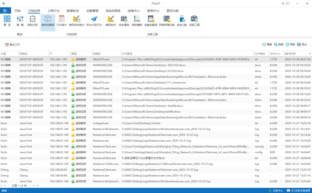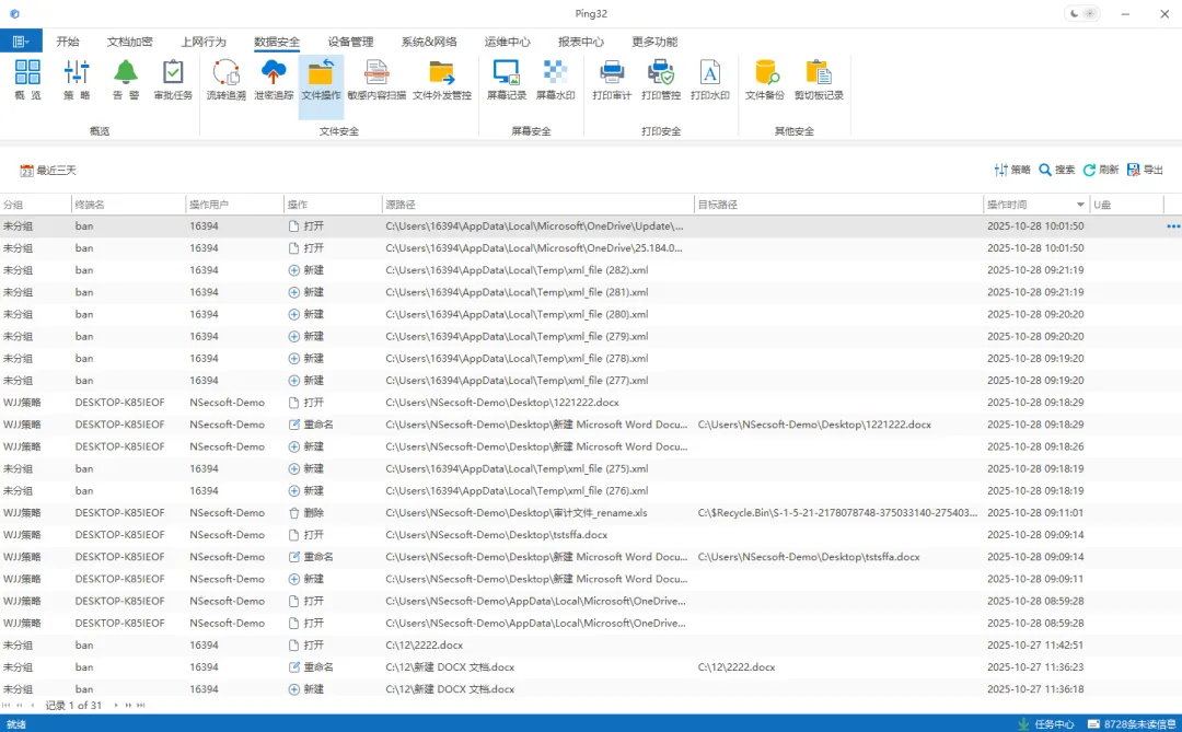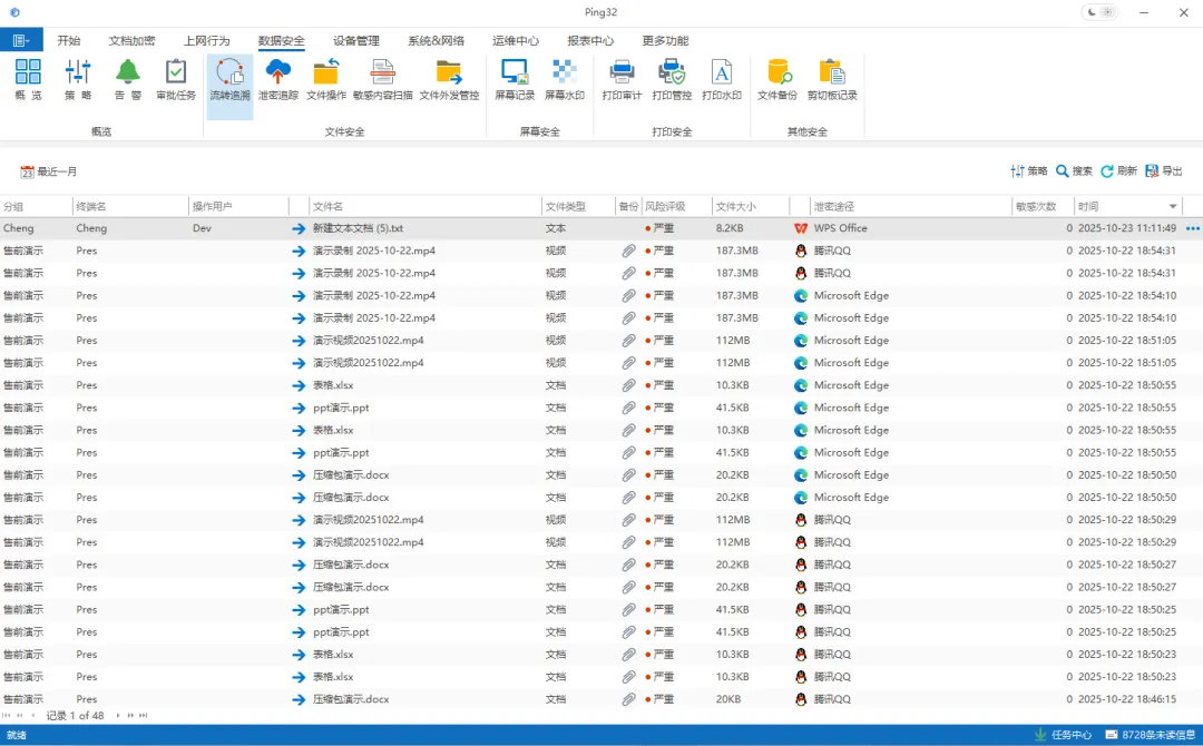 Ping32对代码文件的创建、修改、复制、外发等行为进行全程记录,并嵌入不可见标识。一旦发生泄密,可快速定位到具体人员、时间和操作路径,帮助企业明确责任与风险来源。
