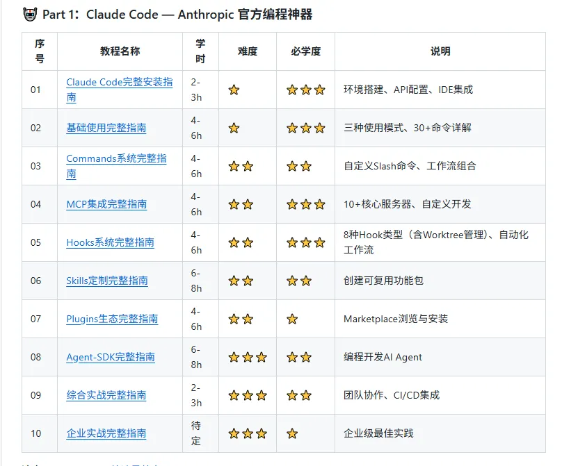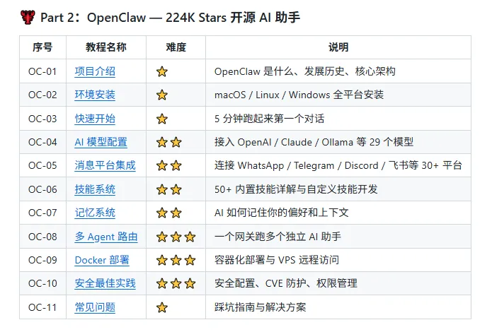 这些内容在教程里都有详细的章节,包括踩坑记录和最佳实践。