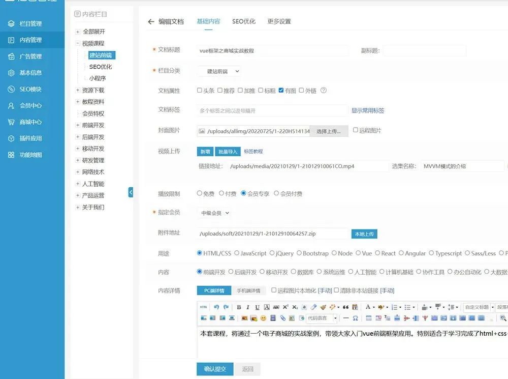 这是一款php知识付费视频课程网站源码,后台可上传本地视频,批量上传视频连接,视频后台可设计权限观看免费试看时间时长,会员等级观看,付费观看等功能,也带软件app权限下载,喜欢的自行部署吧!