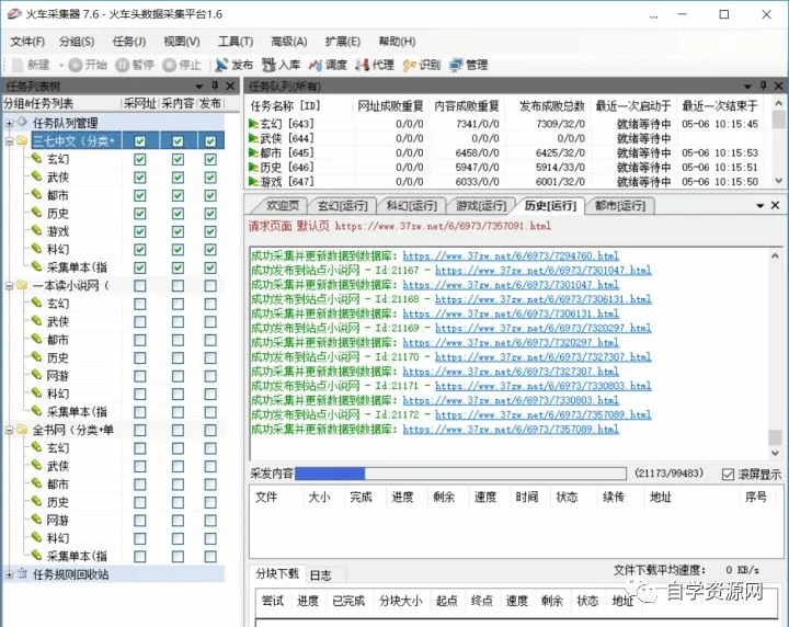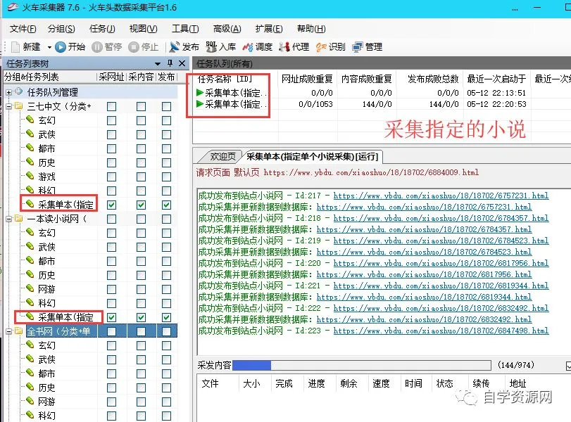 “火车头采集器”24小时不间断连续自动循环采集,自动过虑重复小说!
