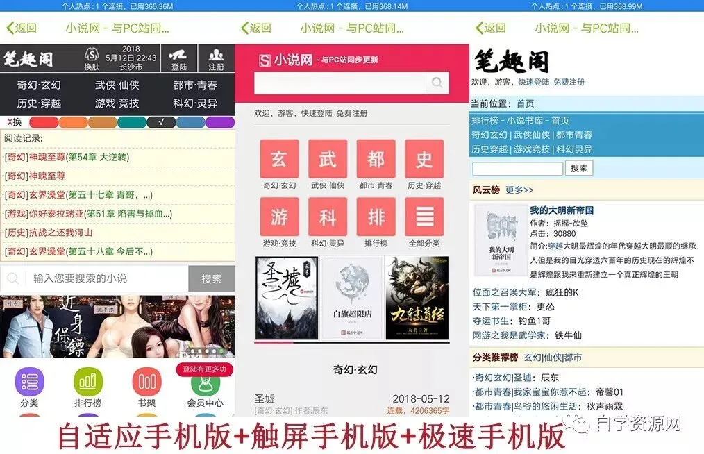11、全新开发自适应手机版,自适应手机版+触屏手机版+极速手机版,3个wap版!