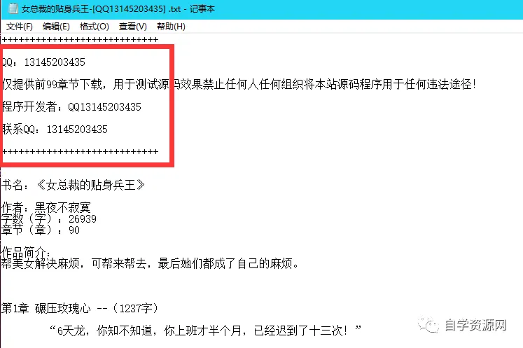 (二)下载的TXT文件里面,头部和尾部可添加文字广告