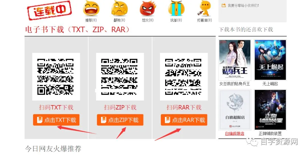 (一)同时支持3种格式下载:TXT、ZIP、RAR