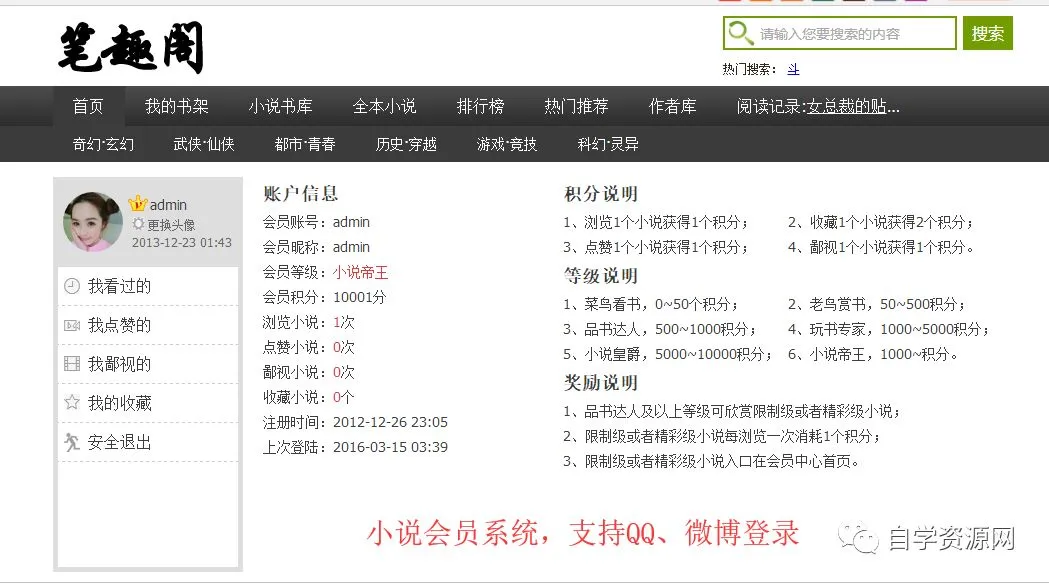 最新小说网站源码 带会员系统 带3个wap端 火车头自动采集+网页采集