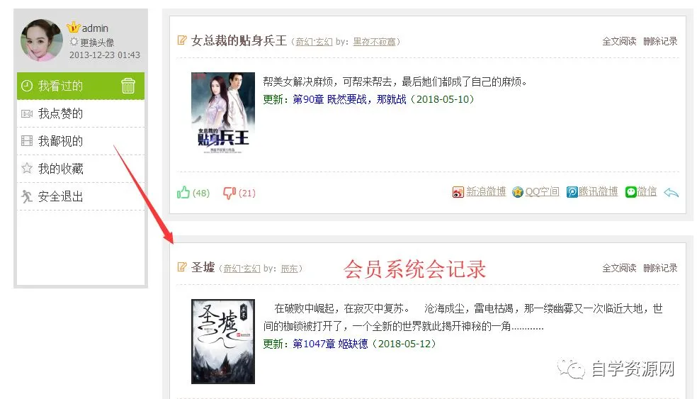 10、会员系统重大升级,全新开发会员系统,收藏记录、浏览记录、点赞记录、鄙视记录!