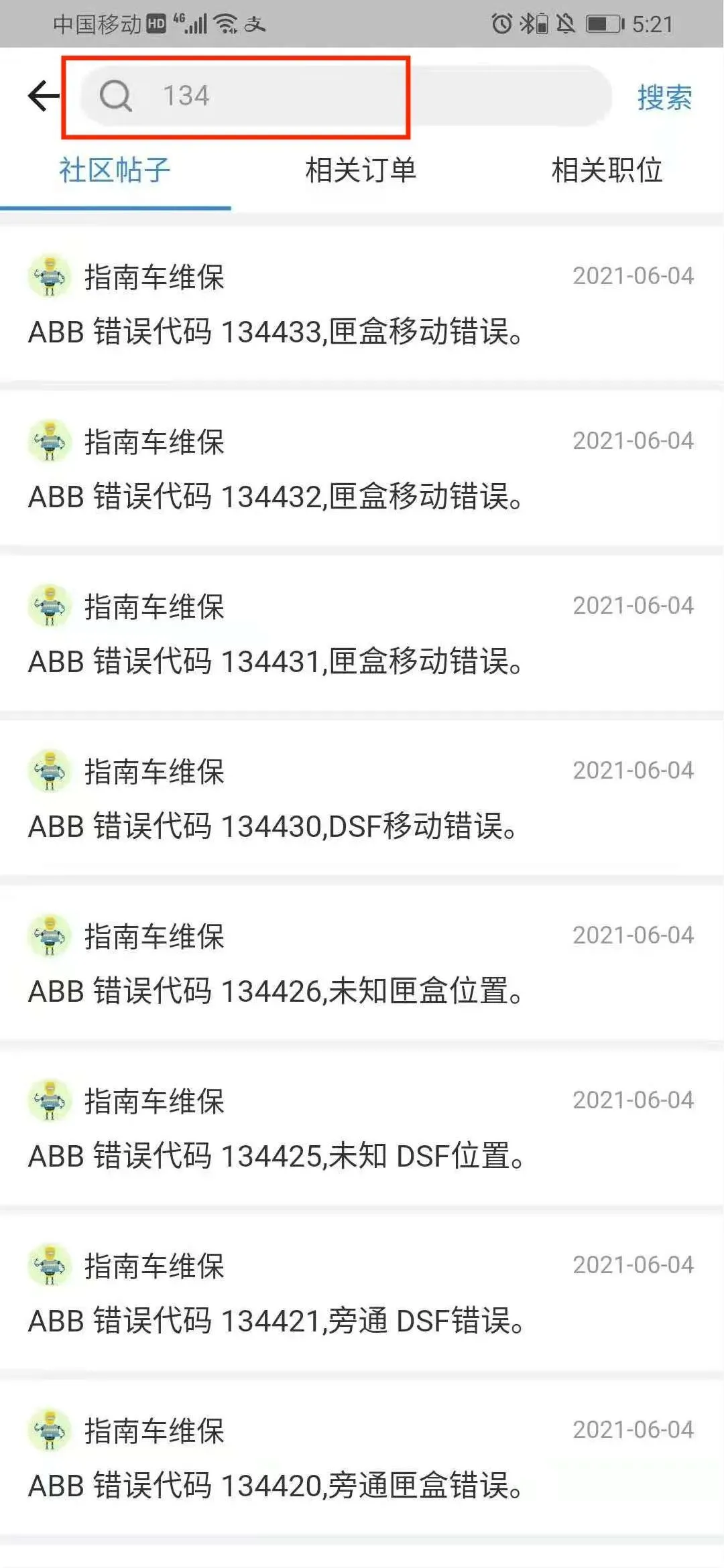 比如这里随便敲个“134”所有包含“134”的帖子都被检索出来。输入完整代码即可进行单条精准搜索。如果你想询问如何解决故障,寻找问题答案,可以在帖子下方进行回复留言。