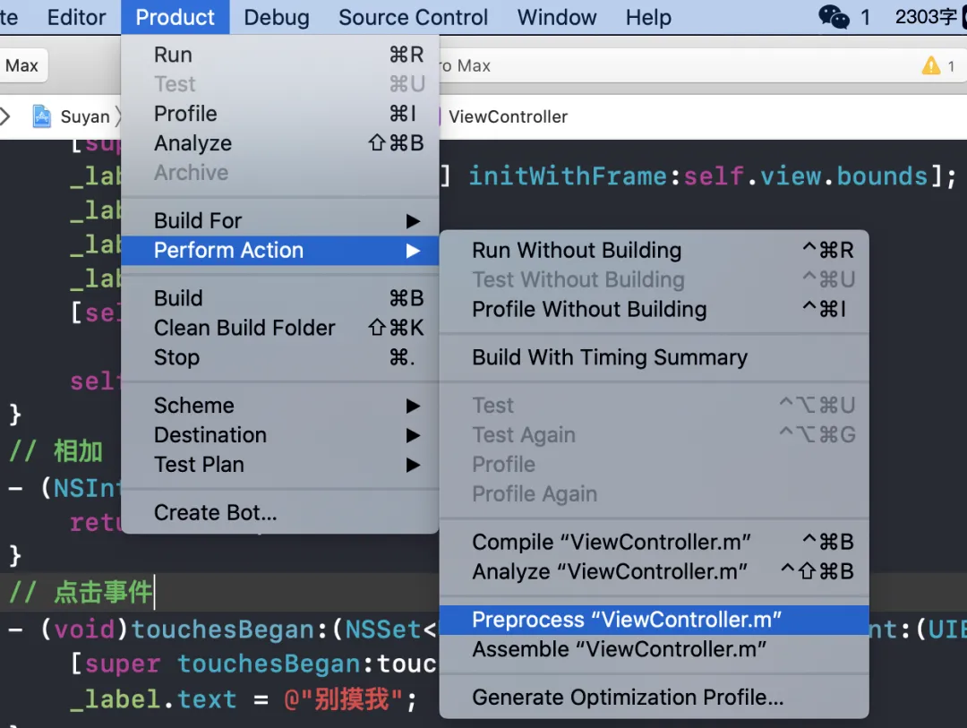 clang -E -isysroot /Applications/Xcode.app/Contents/Developer/Platforms/iPhoneSimulator.platform/Developer/SDKs/iPhoneSimulator.sdk ViewController.m > ViewController.i