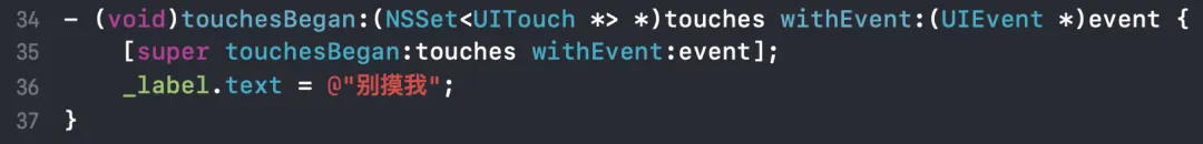 define internal void @"\01-[ViewController touchesBegan:withEvent:]"(%0*, i8*, %6*, %7*) #0 {%开头的代表局部变量alloca 当前函数执行分配内存align 表示占几位%5 = alloca %0*, align 8%6 = alloca i8*, align 8%7 = alloca %6*, align 8%8 = alloca %7*, align 8%9 = alloca %struct._objc_super, align 8store 表示写入store %0* %0, %0** %5, align 8store i8* %1, i8** %6, align 8store %6* null, %6** %7, align 8%10 = bitcast %6** %7 to i8**%11 = bitcast %6* %2 to i8*call void @llvm.objc.storeStrong(i8** %10, i8* %11) #2store %7* null, %7** %8, align 8%12 = bitcast %7** %8 to i8**%13 = bitcast %7* %3 to i8*call void @llvm.objc.storeStrong(i8** %12, i8* %13) #2%14 = load %0*, %0** %5, align 8%15 = load %6*, %6** %7, align 8%16 = load %7*, %7** %8, align 8%17 = bitcast %0* %14 to i8*%18 = getelementptr inbounds %struct._objc_super, %struct._objc_super* %9, i32 0, i32 0store i8* %17, i8** %18, align 8%19 = load %struct._class_t*, %struct._class_t** @"OBJC_CLASSLIST_SUP_REFS_$_", align 8%20 = bitcast %struct._class_t* %19 to i8*%21 = getelementptr inbounds %struct._objc_super, %struct._objc_super* %9, i32 0, i32 1store i8* %20, i8** %21, align 8%22 = load i8*, i8** @OBJC_SELECTOR_REFERENCES_.28, align 8, !invariant.load !10call void bitcast (i8* (%struct._objc_super*, i8*, ...)* @objc_msgSendSuper2 to void (%struct._objc_super*, i8*, %6*, %7*)*)(%struct._objc_super* %9, i8* %22, %6* %15, %7* %16)%23 = load %0*, %0** %5, align 8%24 = load i64, i64* @"OBJC_IVAR_$_ViewController._label", align 8, !invariant.load !10%25 = bitcast %0* %23 to i8*%26 = getelementptr inbounds i8, i8* %25, i64 %24%27 = bitcast i8* %26 to %1**%28 = load %1*, %1** %27, align 8%29 = load i8*, i8** @OBJC_SELECTOR_REFERENCES_.8, align 8, !invariant.load !10%30 = bitcast %1* %28 to i8*call void bitcast (i8* (i8*, i8*, ...)* @objc_msgSend to void (i8*, i8*, %3*)*)(i8* %30, i8* %29, %3* bitcast (%struct.__NSConstantString_tag* @_unnamed_cfstring_.30 to %3*))%31 = bitcast %7** %8 to i8**call void @llvm.objc.storeStrong(i8** %31, i8* null) #2%32 = bitcast %6** %7 to i8**call void @llvm.objc.storeStrong(i8** %32, i8* null) #2ret void}