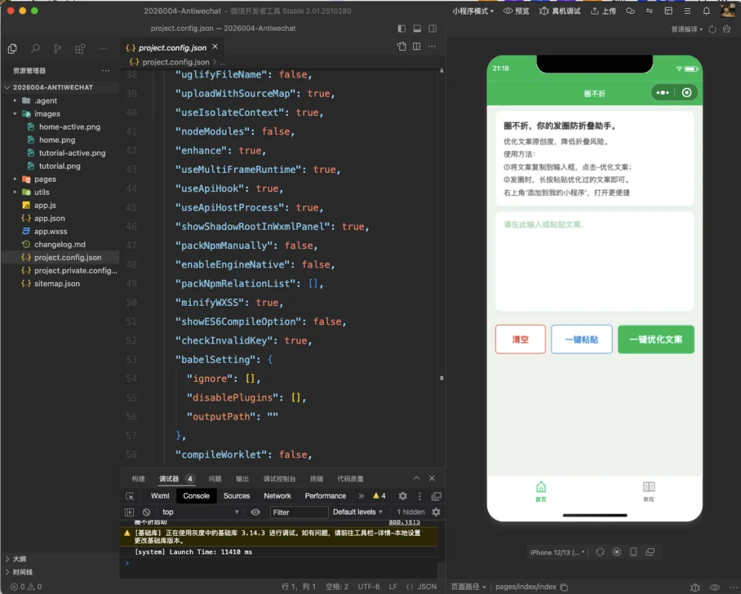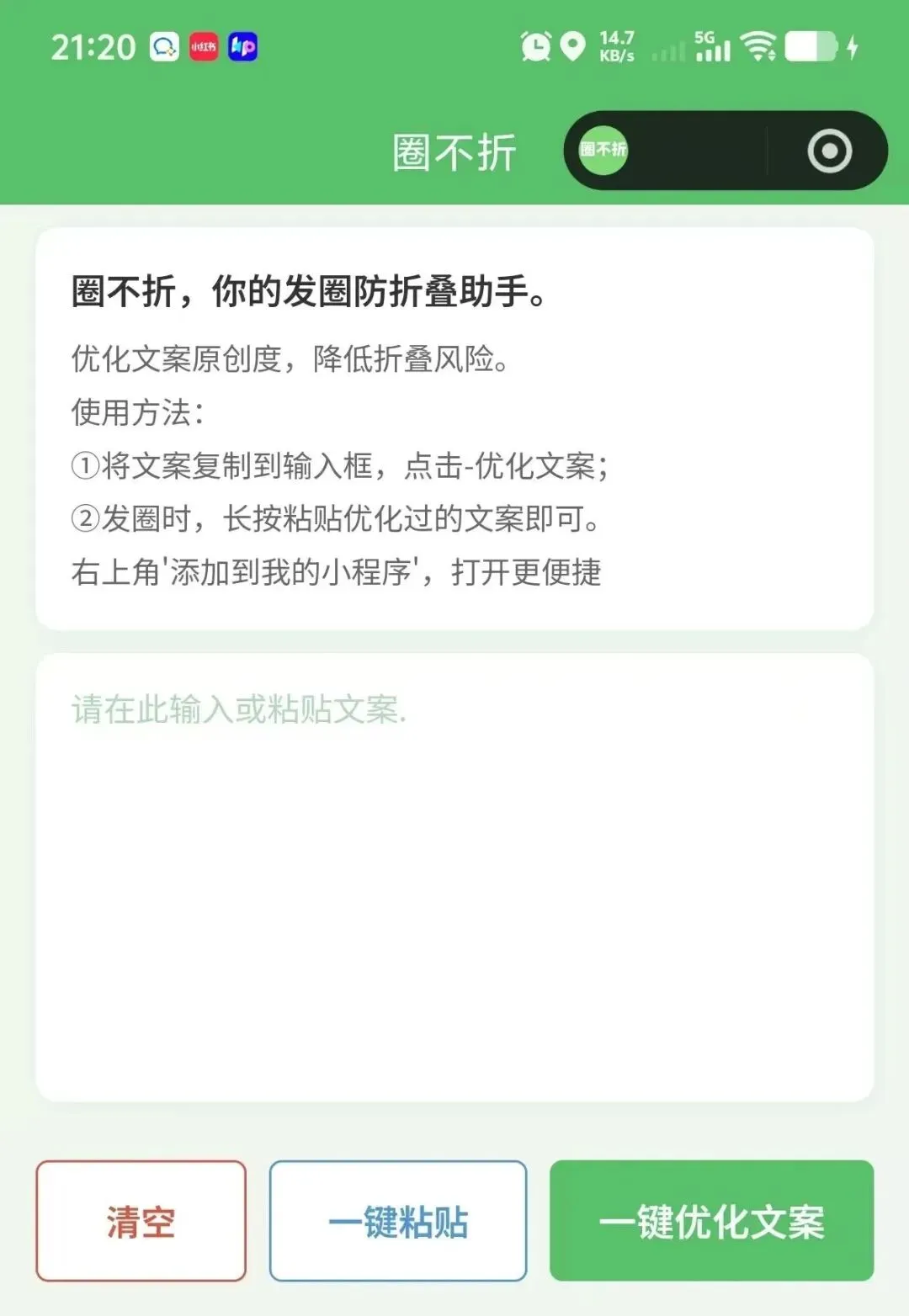 AI几分钟生成完整的代码框架和页面。我选择动手实践的第一款小程序,是微信朋友圈防折叠。