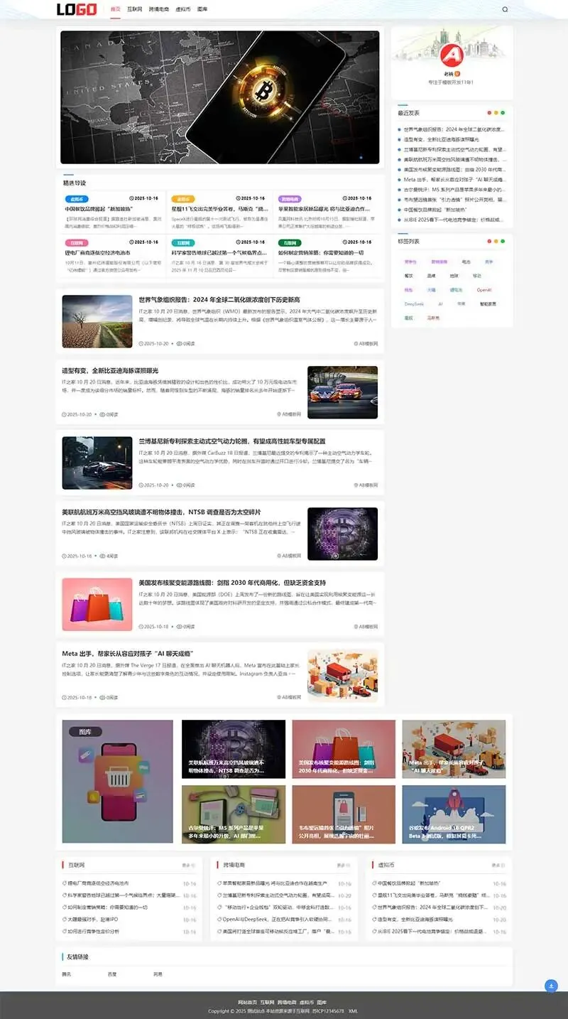 PbootCMS内核开发的网站模板,该模板适用于新闻资讯网站、个人博客网站等企业,当然其他行业也可以做,只需要把文字图片换成其他行业的即可;