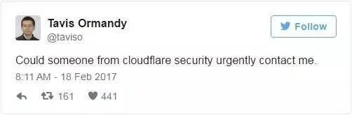 2 月 18 号的时候,在谷歌 Project Zero 安全小组工作的 Travis Ormandy 最先在 Twitter 上爆料了此事。但实际上,这个缺陷或许可以追溯至去年 9 月 22 号。