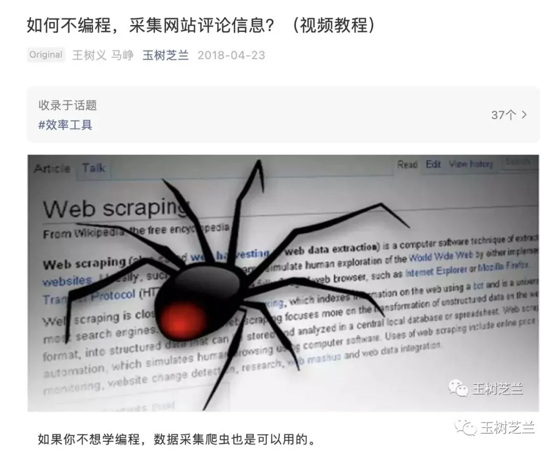 其实早在3年以前,我就带着研究生给你展示过这种「无代码」的威力了,你可以复习我和马峥那篇《如何不编程,采集网站评论信息?(视频教程)》。