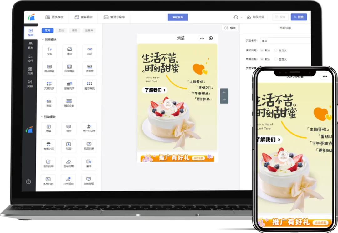 不用花几万块找外包定制,也不用自己写一行代码,用SaaS平台就能快速生成。这种工具的特点就是:可视化操作,像做PPT一样简单,年费也就几千块,比雇一个前台接待还便宜,还支持终身买断,适合咱们中小蛋糕店。