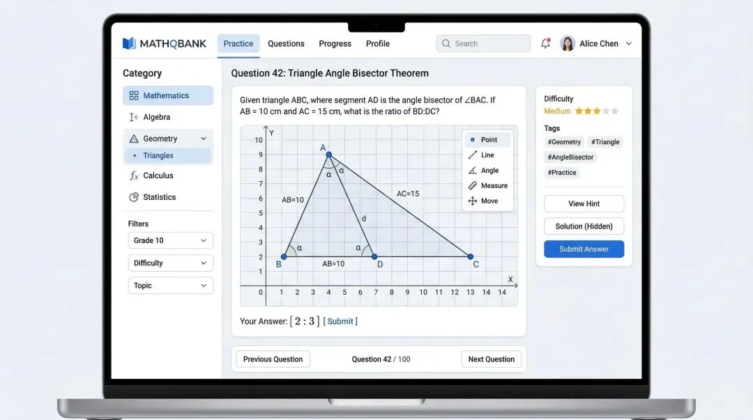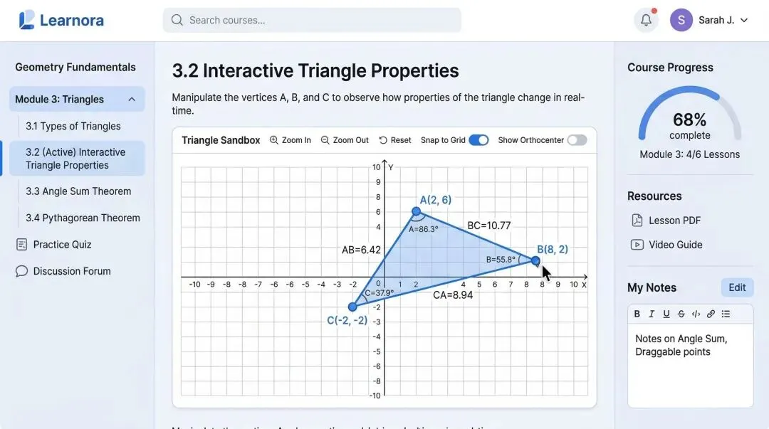 在课程页面中直接嵌入几何图形,支持拖拽与动态演示。