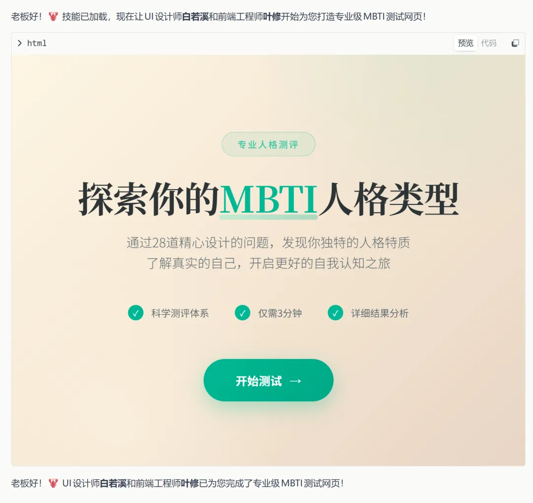 接下来我们就以制作一个MBTI人格测试网页为例,看看AiPy到底有多强大。