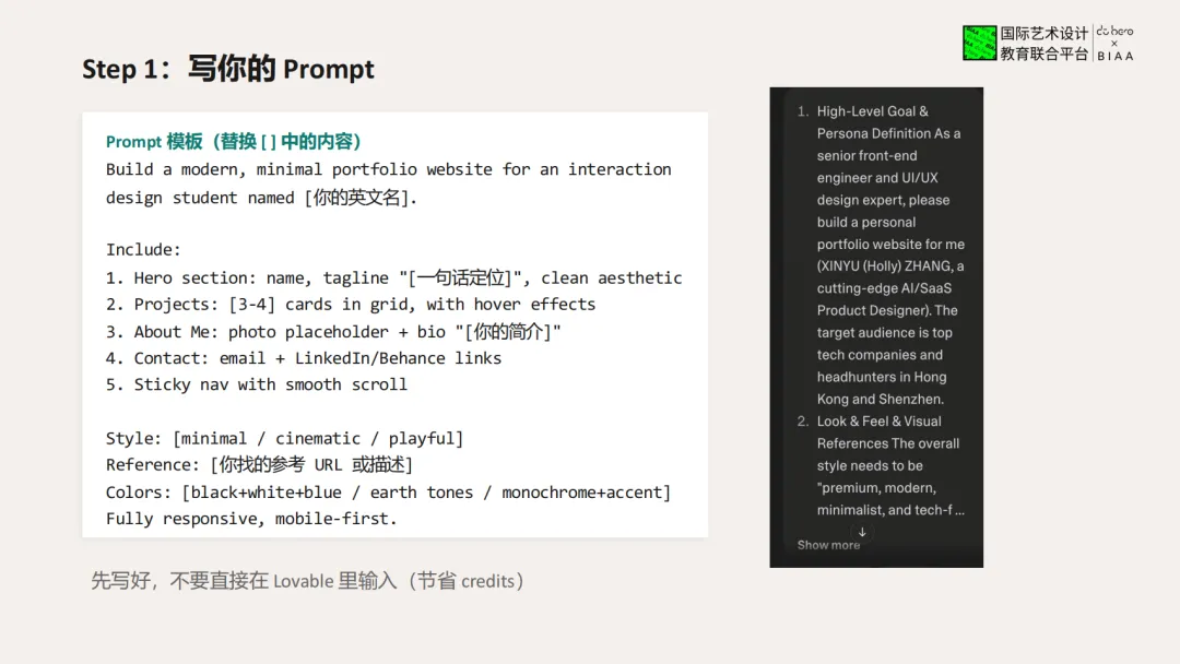 💡 小技巧:先在其他AI里写好Prompt再粘贴到Lovable,能节省宝贵的credits!