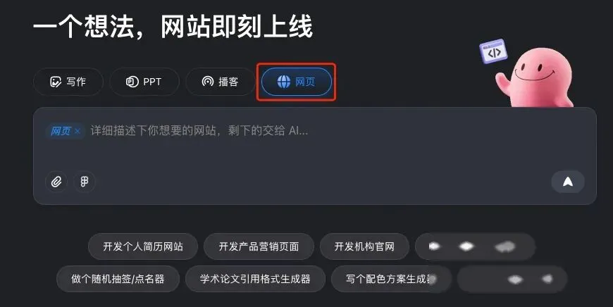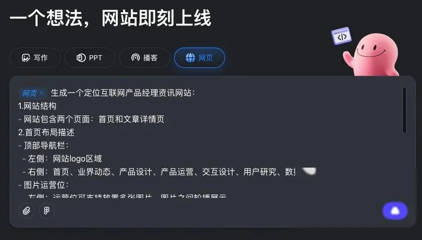 做网站也是一样。Coze这次上线的网页设计功能,核心逻辑就是:你出嘴,它动手。完全不需要你会写任何代码,只要能把需求说明白,剩下的交给算法。