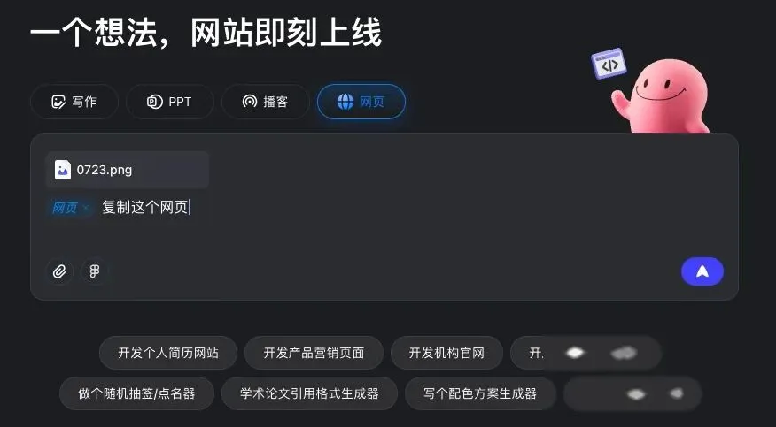 Coze还有一个杀手锏:支持上传图片生成网页。截图、手绘稿甚至是Figma设计稿,通通都能识别。