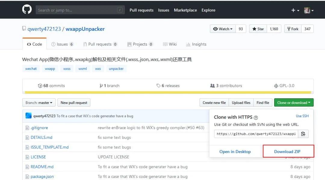 下载地址:https://github.com/qwerty472123/wxappUnpacker