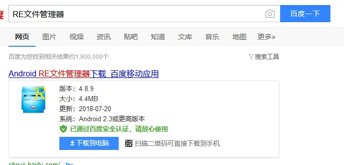 注意看图标,一定要下载这款带有r标识的,有些RE管理器和夜神模拟器有冲突,不能获取root权限