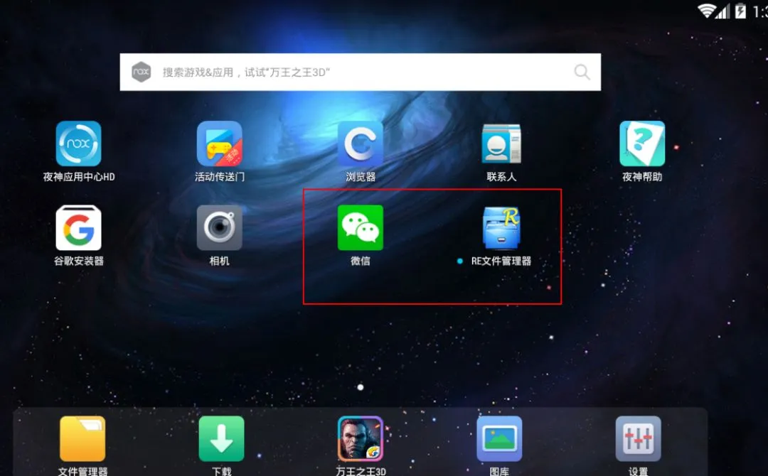 模拟器微信中运行一下后,直接切回模拟器桌面运行RE文件管理器