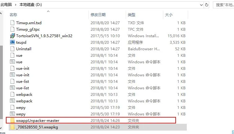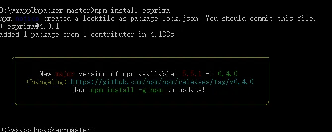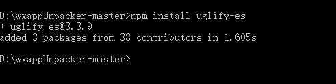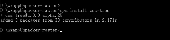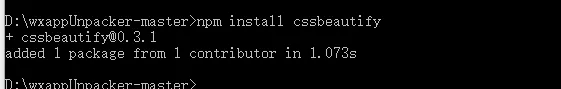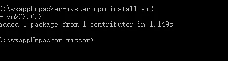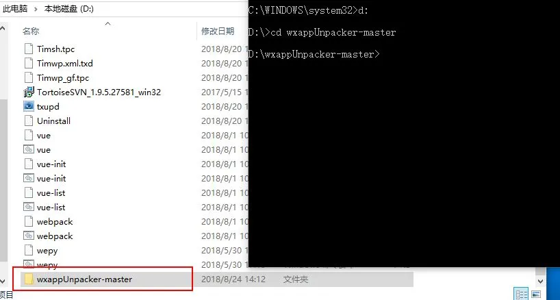 cd 到下载好的反编译脚本目录下,我把文件放在了d盘里面,因此D:>cd wxappUnpacker-master。