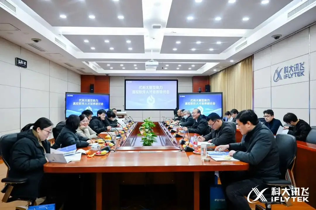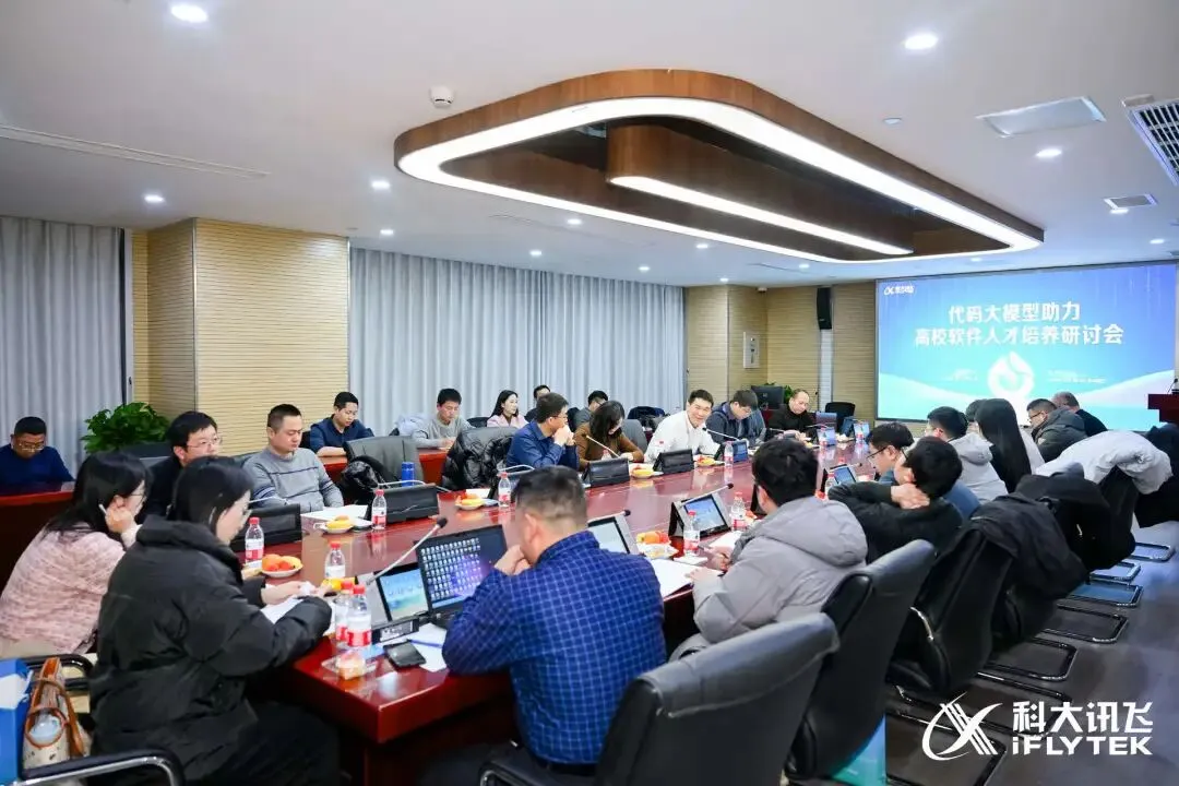 安徽省教育厅高等教育处二级调研员檀俊作开场致辞,他提到,人工智能已成为新一代产业变革的核心驱动力,安徽省各高校与企业应加快调整优化学科专业结构,加强人才培育和科研平台的建设,不断深化产教融合、科教融汇,在推进数字化转型的过程中贡献新智慧,为现代化美好安徽的建设贡献新力量。随后,科大讯飞股份有限公司副总裁汪张龙在致辞中提到,希望充分发挥技术优势,与安徽省各高校共同推进软件人才培养模式创新,深入探索认知大模型在高校教学改革、科研创新与智慧管理等各场景的创新应用,校企携手用人工智能的“星星之火”,共同照亮高等教育数字化转型与高质量发展的未来!会上,科大讯飞高校大模型产品总监贺胜详细介绍了大模型技术的发展历程与核心能力,及其在高校教育教学、人才培养、科研创新、师生服务等不同场景的创新应用,为高校数字化转型提出了可行方案。他特别提到,依托大模型代码纠错、代码解释、代码生成等强大能力,星火代码教学实训系统可有效减轻教师编程教学负担,提升学生学习效率,高效赋能软件技术人才培养。北京邮电大学计算机学院网络智能研究中心徐童作《大模型赋能编程教学的探索和实践》报告。他从当下编程教学的痛点与需求出发,深入讲解了学校数字化建设创新成果——“码上”平台。平台基于科大讯飞大模型强大代码能力而研发,有效实现了智能技术与教育教学的双向赋能,加速了泛在化、智能化学习生态向人才培养全过程的渗透,为软件人才培养插上了“科技的翅膀”。上海米可维大数据科技有限公司CTO王杰以“智能编程助手助力企业研发效率提升”为主题作报告,从软件行业从业者的视角,详细阐释了科大讯飞代码大模型如何提升企业软件研发效率。他提到,生成式AI的智慧涌现是一场技术上的革命、更是效率上的质变。高校人才培养应更加重视新技术、新工具的学习与运用,以提升未来职场上的竞争力。在主会场的精彩分享之后,与会嘉宾被分为五个小组,围绕“代码大模型助力高校软件人才培养”主题展开深入的交流与研讨。各高校代表踊跃发言,结合各自学校教育教学特色,深入探讨高校软件人才培养的新思路,分享交流大模型助力编程教学的新路径,为高校的数字化转型提供了新的切入点。认知大模型的“智慧涌现”,开启了高等教育数字化转型的新篇章。科大讯飞愿充分发挥技术优势,与更多高校携手前行,为安徽省教育数字化转型与新时代人才培养持续注入新动能!编| 月光