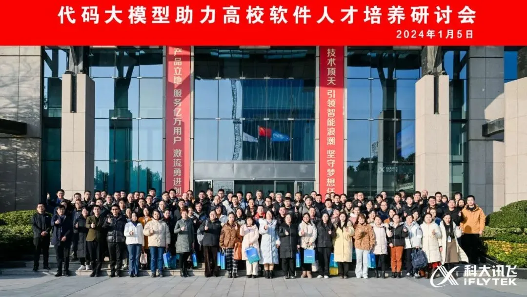 1月5日下午,由科大讯飞股份有限公司主办的代码大模型助力高校软件人才培养研讨会在科大讯飞合肥总部成功举行。安徽省教育厅高等教育处二级调研员檀俊,安徽省电化教育馆馆长闫明圣,科大讯飞股份有限公司副总裁汪张龙,以及来自安徽省60多所高校的领导老师130余人参与会议,共同探讨通用人工智能赋能下高校软件人才培养的新方案、新范式与新路径。此次研讨会由科大讯飞高教事业部总经理陈红斌主持。