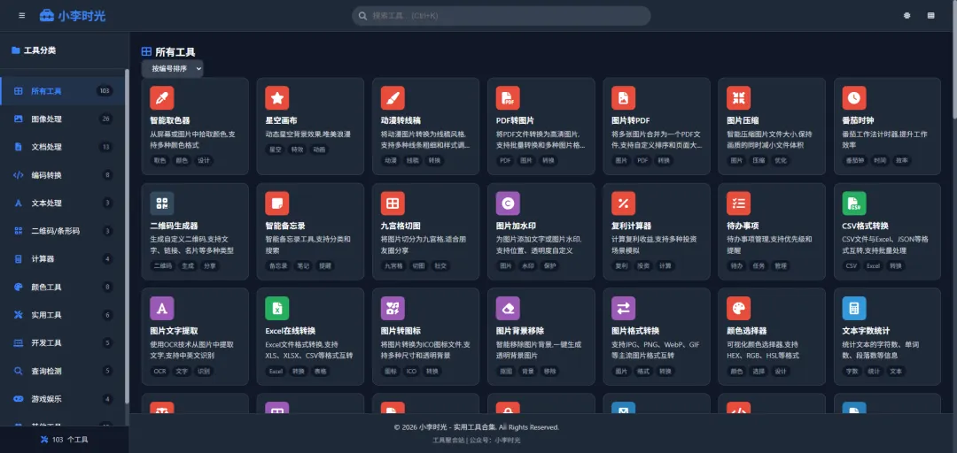 这 100 个网页工具,没有什么很复杂工功能,都是日常生活工作能使用到的“小而美”工具,覆盖了办公效率、学习辅助、日常便捷三大类,每一个都能解决一个具体的小痛点。